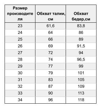 - Размер производителя25